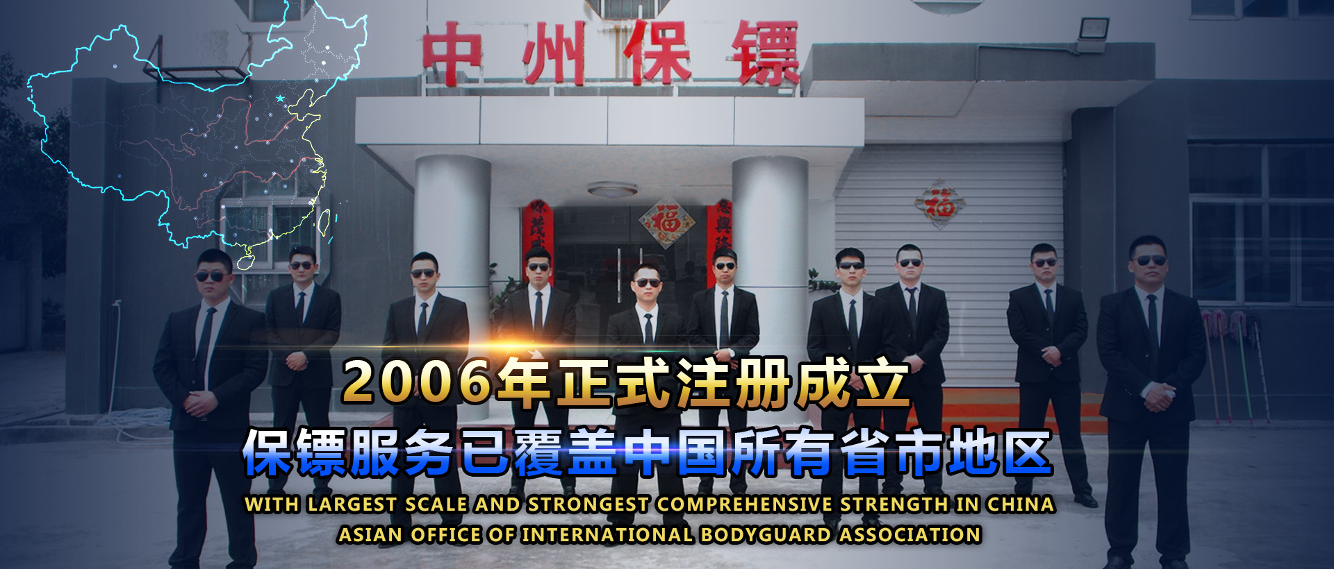 深圳中州保鏢安全顧問有限公司-中國大陸地區較早從事專業私人保鏢安全服務的企業,職業保鏢服務涉及全球90多個國家和地區。目前,中州國際保鏢公司出巨資在深圳東部沿海地區打造了12000平方米室內職業保鏢訓練基地,數百項職業保鏢綜合技能都可在保鏢訓練基地內完成培訓。被國內外媒體譽為民間“中南海保鏢”,“中國專業保鏢公司”等榮譽稱號。